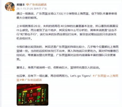 沒想到吧,廣東男籃坐鎮(zhèn)主場(chǎng),居然以73-113慘敗給了上海隊(duì),輸了40分之多,爆出一大冷門,令人汗顏!作為十一冠王,廣東男籃目標(biāo)是拿到總冠軍的,沒想到,在自己主場(chǎng),面對(duì)豪門上海隊(duì),居然就被打了個(gè)底朝天。那么,廣東隊(duì)為何會(huì)40分慘敗呢?賽后,廣東媒體人麥穗豐老師給出答案,說得太實(shí)在了,杜鋒還能咋地?